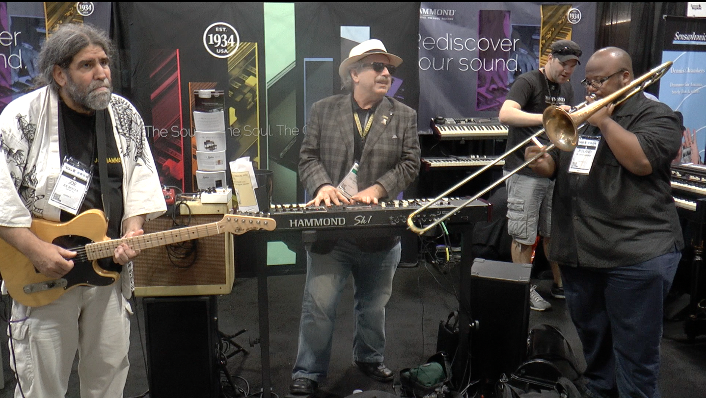 L to R: Joe Berger guitar, Jon Hammond Sk1 organ, Roland Barber trombone - at Hammond Suzuki USA booth #1012 - Summer NAMM Show