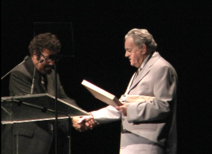 Joe Lamond President CEO of NAMM presents special plaque to Mr. Shuji Suzuki President Suzuki Musical Instruments makers of Hammond Organs and Leslie Speaker in honor of 80th year of Hammond Organs and Keith Emerson speaking just before we went down to the stage - Jon Hammond