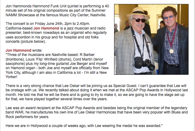 Accordions Worldwide Breaking News: Jon Hammond Funk Unit Featured, Summer NAMM, Nashville, Tennessee - USA